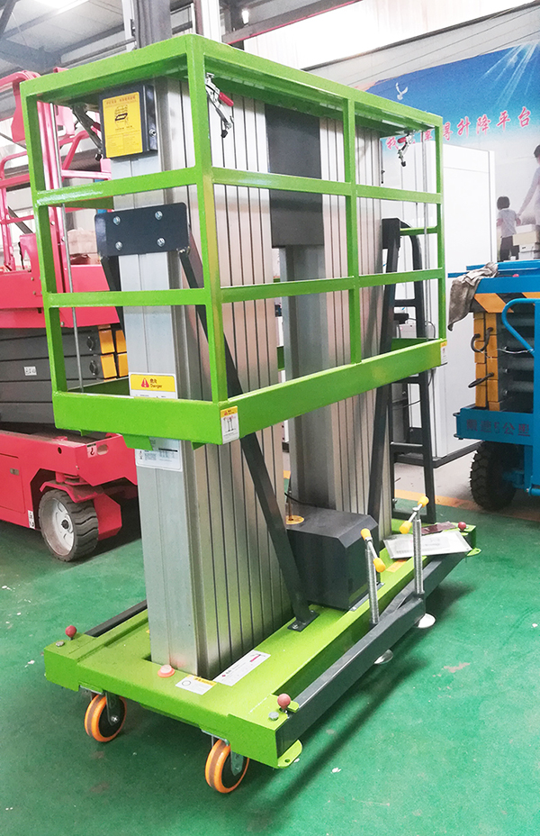 產品簡介:鋁合金升降機由高強度優(yōu)質鋁合金型材精製而成,具有造型美觀、體積小、重量輕、結構緊湊、移動方便、升降平穩(wěn)、操作方便、安全可靠等優(yōu)點,廣泛用於各行業(yè)大廳、高檔賓館、餐廳、車站、機場、影劇院、展覽館等場所,是保養(yǎng)機具、油漆裝修、調換燈具、電器、清潔保養(yǎng)等用途的最佳安全伴侶。雙柱鋁合金升降機是單柱鋁合金的升級版,它具有兩組鋁合金升降支臂(支桿),與單柱鋁合金升降機相比,它的穩(wěn)定性和載重量大幅度提高,載重量達到200kg,它的穩(wěn)定性更高,抗風性更強、工作檯面尺寸更大,能容納兩個人同時在升降機上工作。雙柱鋁