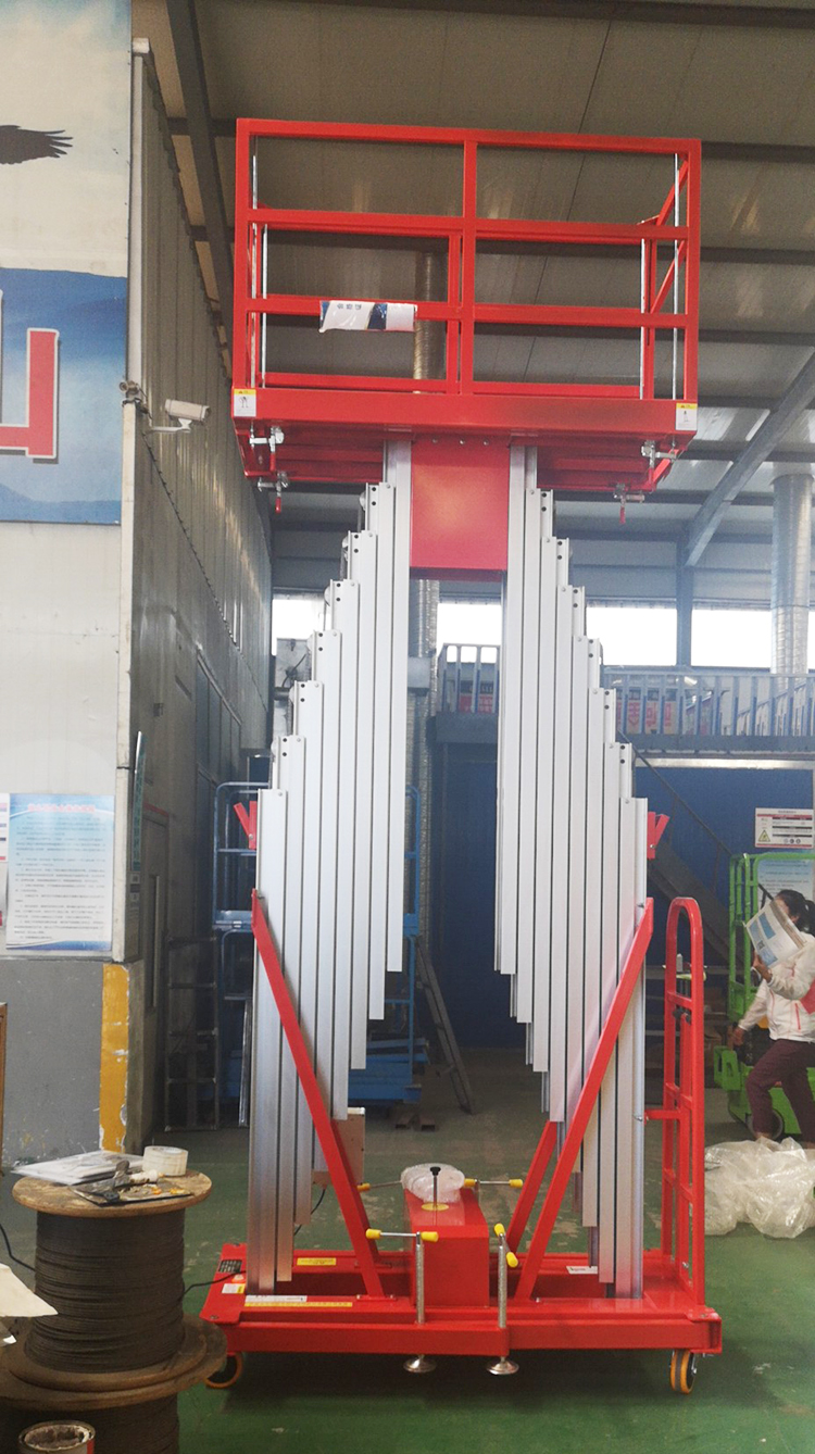 產品簡介:鋁合金升降機由高強度優(yōu)質鋁合金型材精製而成,具有造型美觀、體積小、重量輕、結構緊湊、移動方便、升降平穩(wěn)、操作方便、安全可靠等優(yōu)點,廣泛用於各行業(yè)大廳、高檔賓館、餐廳、車站、機場、影劇院、展覽館等場所,是保養(yǎng)機具、油漆裝修、調換燈具、電器、清潔保養(yǎng)等用途的最佳安全伴侶。雙柱鋁合金升降機是單柱鋁合金的升級版,它具有兩組鋁合金升降支臂(支桿),與單柱鋁合金升降機相比,它的穩(wěn)定性和載重量大幅度提高,載重量達到200kg,它的穩(wěn)定性更高,抗風性更強、工作檯面尺寸更大,能容納兩個人同時在升降機上工作。雙柱鋁